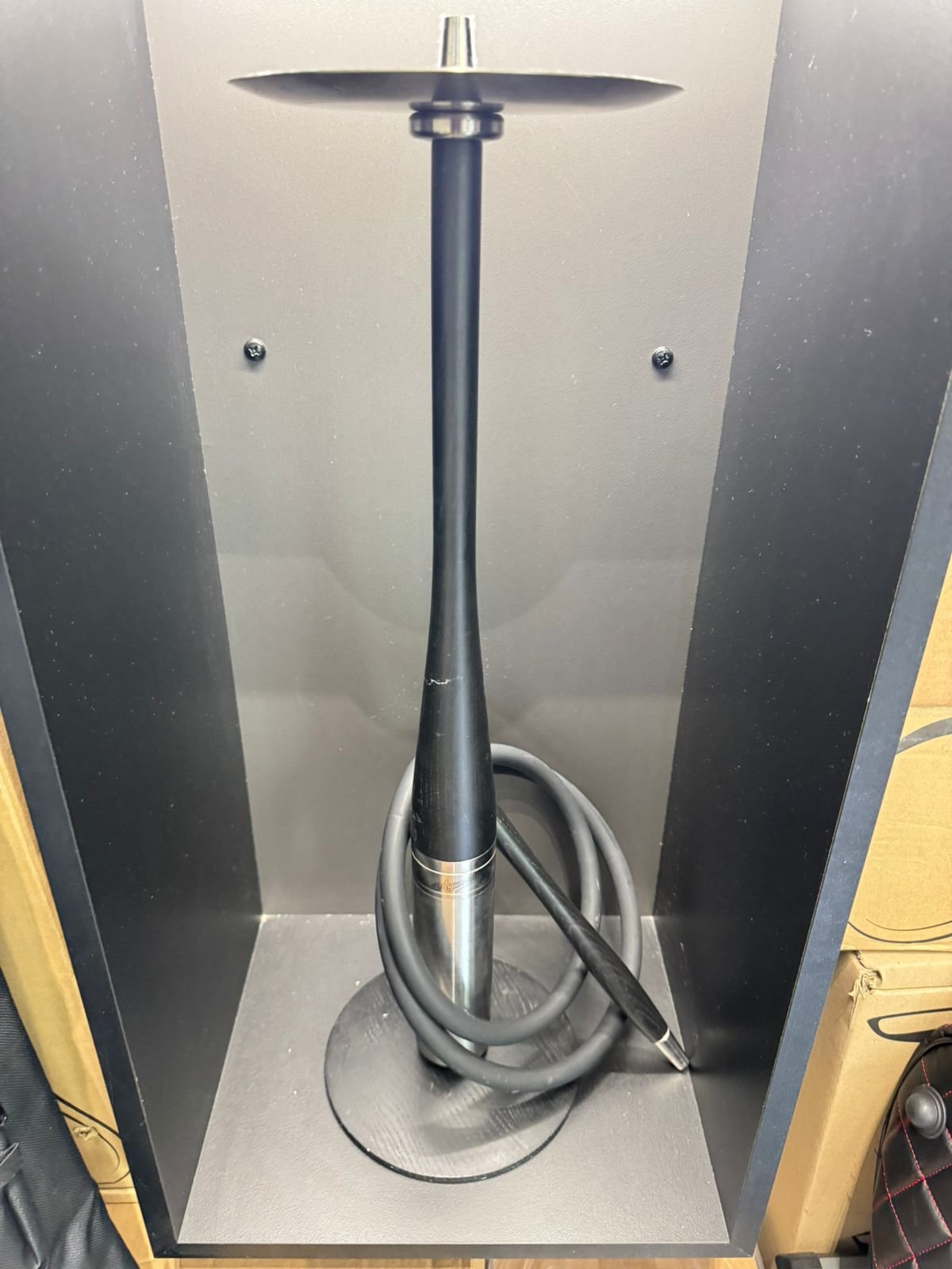 Για σταθερότητα, το ναργιλέ είναι εξοπλισμένο με μεταλλική και ξύλινη βάση. Η βάση μπορεί να αντικατασταθεί με ένα ειδικό καρφί, επιτρέποντάς σας να την αγκυρώσετε στο έδαφος ή να τη χρησιμοποιήσετε ως πόκερ για τη συσκευασία καπνού στο μπολ.