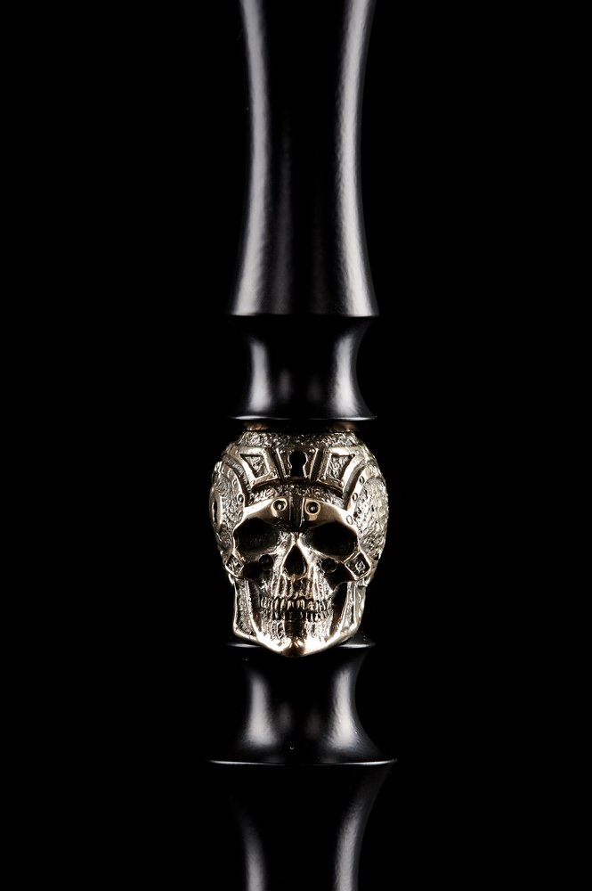 Το κομψό σχέδιο Dzen Skull θα σας κάνει να σκεφτείτε την αιωνιότητα. Το χειροποίητο ένθετο σε μορφή κρανίου με φίδια στις κόγχες των ματιών είναι τρομακτικό και μαγευτικό. Το εξωτερικό μέρος του άξονα είναι κατασκευασμένο από αλουμίνιο ποιότητας τροφίμων και το βυθισμένο μέρος είναι κατασκευασμένο από ανοξείδωτο χάλυβα, το οποίο είναι ισχυρό και ανθεκτικό στο νερό. Έτσι, μπορείτε να σταματήσετε να ανησυχείτε: αυτός ο ναργιλές θα είναι μαζί σας για περισσότερες από μία απόκριες!